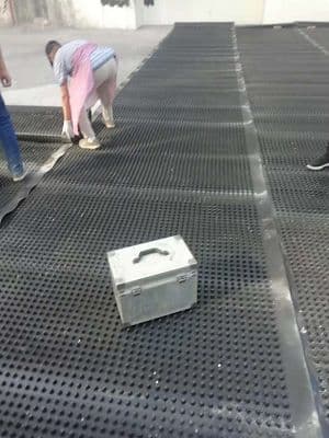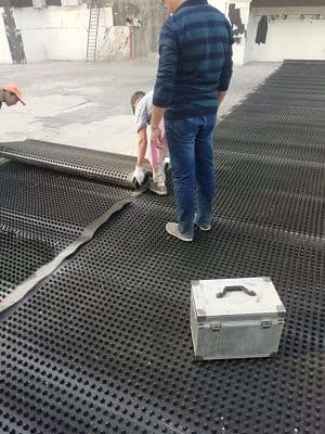 客戶發(fā)來的施工圖 排水板正在鋪設(shè)中 公司提供的焊接機(jī)焊接接縫 卷材排水板2*15米寬 30平方一卷